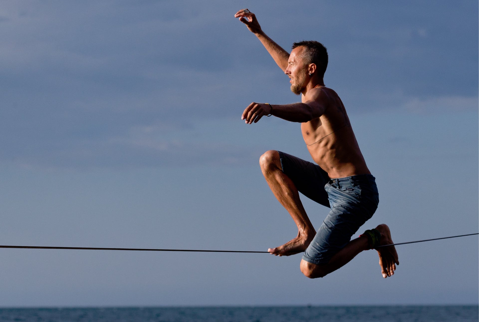 Igor Pshenichny walks a tightrope over the Black Sea.